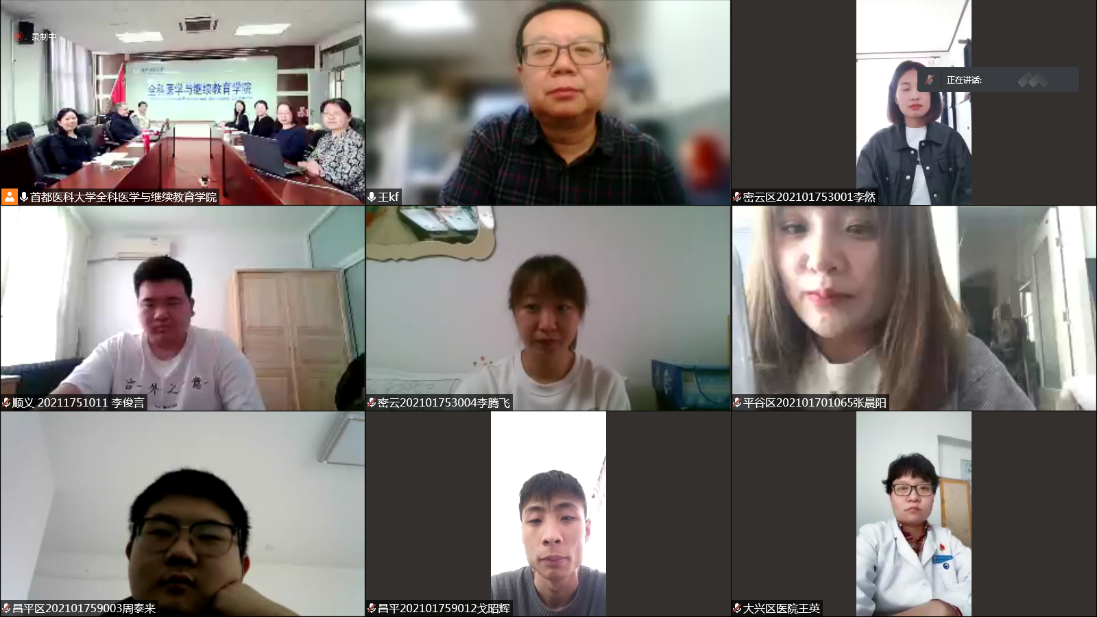 付丽书记、路孝琴院长、杜娟副院长、路学一副院长出席典礼,密云、大兴、平谷、通州、房山、怀柔、延庆、昌平、顺义、门头沟等10所临床培训基地的科教科主任、班主任和160名2021级助理全科医师规范化培训学员共同相聚在“云端”。典礼由杜娟副院长主持。