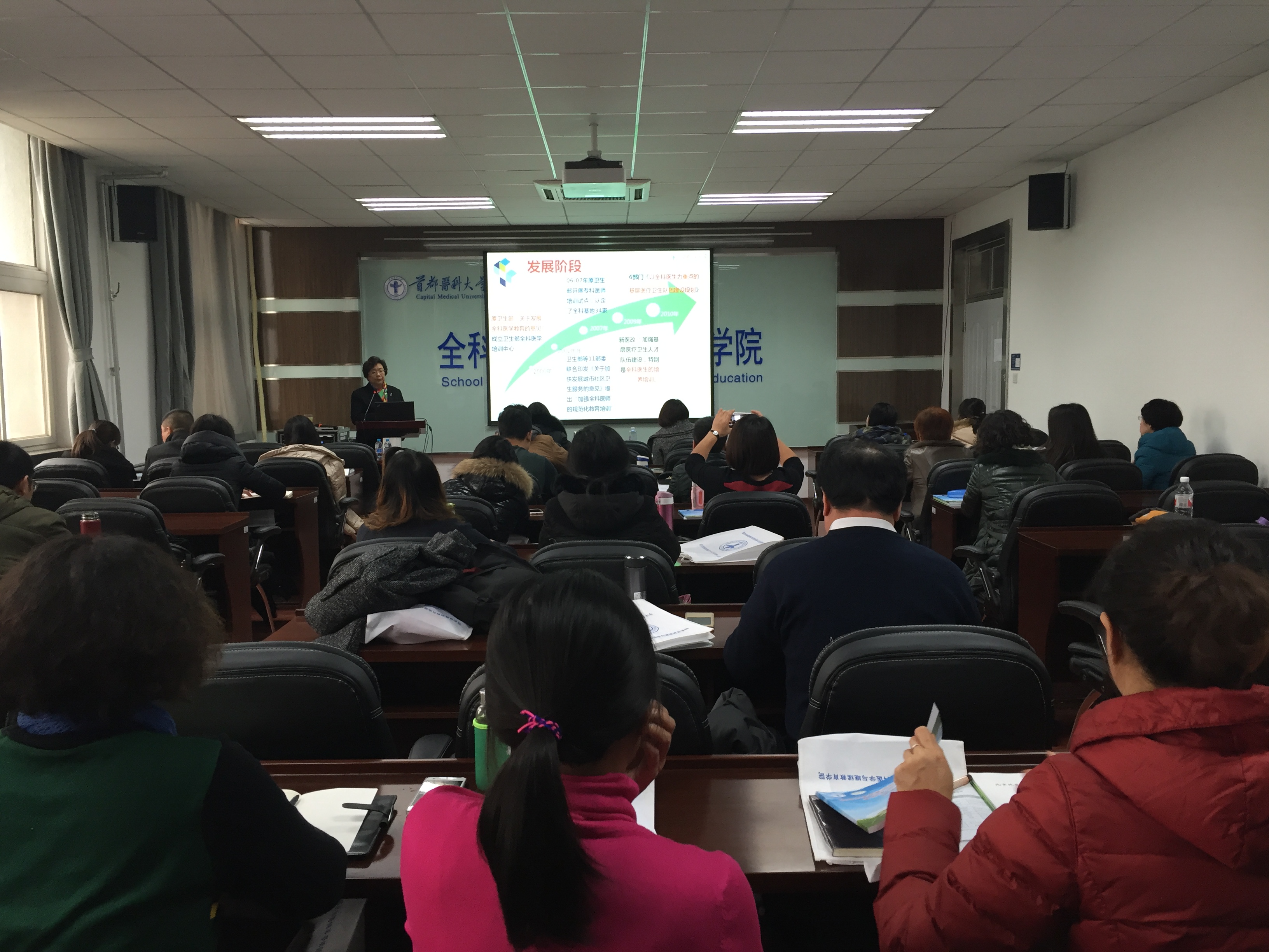 学员们克服年底工作任务重、路途远的实际困难,认真听讲、无一缺勤。通过培训,学员们熟悉了全科医学人才培养的相关政策、全科医生3+2培养方案及其课程体系,掌握了社区卫生服务机构教学管理、社区公共卫生带教、全科医疗健康档案规范书写,以及《北京地区助理全科医师规范化培训基层实践考核手册》使用和注意事项等理论和技能。本次培训,为这些基层医疗机构下一步申报 “3+2”助理全科医师培训基地,更好地完成2017年10月份即将承担的4个月的基层医疗实践教学任务,奠定了良好基础。