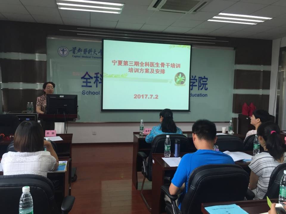 为了加强宁夏回族自治区全科医生培养,2014年底我校与宁夏卫生计生委签订了为期4年的全科医生研修培养项目,今年该项目进入第三期。2017年7月1日,经过考核遴选来自宁夏6个地区16家医院、社区卫生服务中心、乡镇卫生院的18名全科医生骨干如期报到;7月2日上午在传奇扑克官网