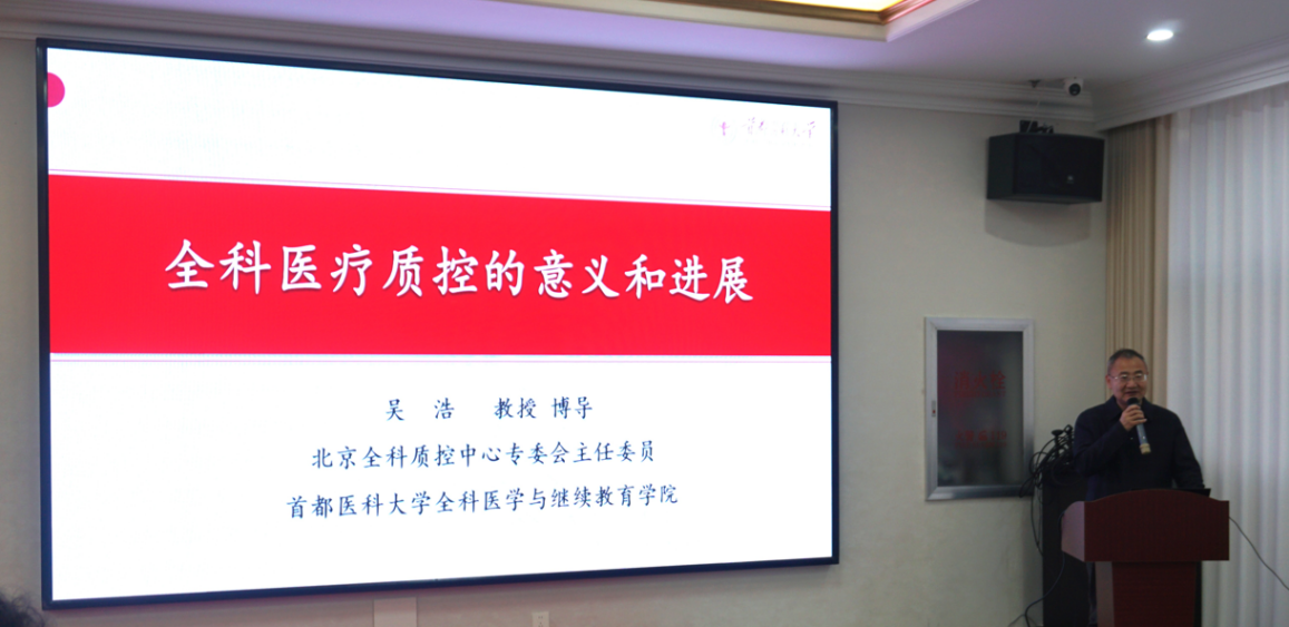 吴浩教授在开幕致辞中强调,全科医疗质控是保障医疗服务安全有效、推动全科医学学科高质量发展的核心支撑。他提出,全科质控工作需立足 “规范诊疗流程、强化人员培训、健全监督机制” 三大维度系统推进,助力全市全科医疗服务向规范化、标准化、同质化方向稳步迈进。随后,吴浩教授在《全科医疗质控的意义和进展》专题报告中,深入解析医疗质量核心内涵与国际前沿经验,创新性提出围绕 “促、防、诊、控、治、康” 全链条构建质量管理体系的思路,推动基层医疗从被动应对向主动防控转型。